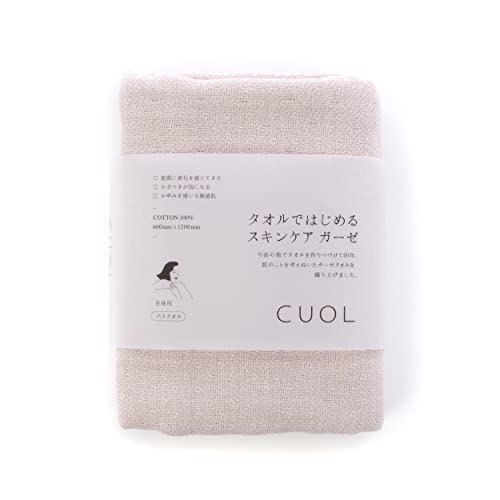 CUOLのタオルは、やわらかなガーゼ素材で敏感肌にも優しいスキンケアに最適なバスタオルです。ピンクベージュの柔らかな色合いが魅力で、毎日のバスタイムを特別なものにしてくれます。
