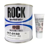 ホビー・補修用ポリパテ、簡単に盛れてヒケなし。ロックポリパテ中目1kgと硬化剤エロー150 20g付のセット。リニューアル後の製品で、使いやすさ向上。