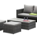 DEPOSシルミオーネテーブル4点セットは、スタイリッシュなデザインのガーデンファニチャーです。耐候性素材を使用し、屋外での使用に最適。快適なソファとテーブルがセットになっています。