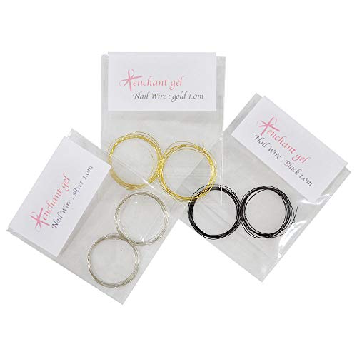 ネイルワイヤーセット(太さ0.2mm)ゴールド、シルバー、ブラック各1メートル、合計3メートル。デザインに華やかさをプラスするアイテムです。