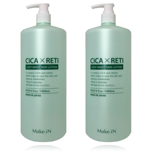 Make.iN CICA × RETI ディープ モイスト スキン ローションは、シカとレチノールを配合した化粧水です。保湿効果が高く、乾燥肌に最適。1,000mLの大容量で、2本セットでお得です。