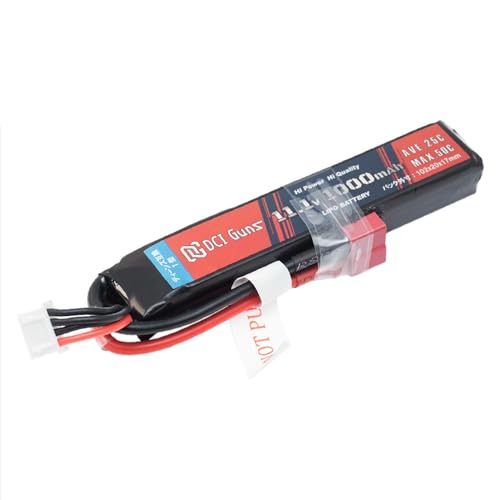 DCI Guns 11.1V スティック LiPoバッテリーは、ディーンズ互換コネクター(T型)を搭載し、25C-50Cの高い放電レートを実現。容量は1000mAhで、エアソフトやRCカーに最適な性能を提供します。