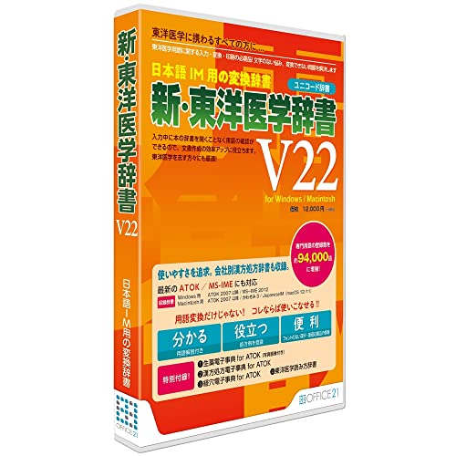 新・東洋医学辞書V22は、東洋医学の専門用語や事例を網羅したユニコード対応の辞書です。最新の医学知識を提供し、学術研究や実務に役立つ資料として利用されます。