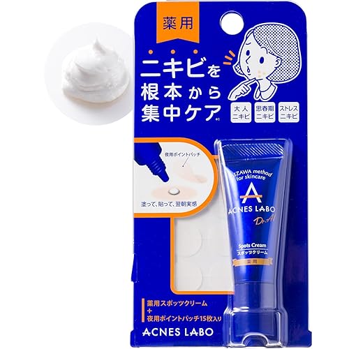 アクネスラボの薬用スポッツクリームは、ニキビケアに特化した無添加・低刺激の製品です。約170回分使用できる便利な夜用ポイントパッチ付きで、肌に優しく効果的にアプローチします。