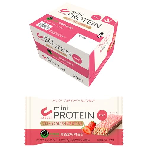 クレバー プロテインバー ミニ いちご味は、20本セットで提供される低糖質のプロテインバーです。手軽に栄養補給でき、甘酸っぱいイチゴ味が特徴。運動後や間食にぴったりのスナックです。