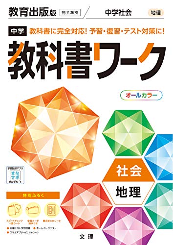 中学教科書ワーク 社会 地理 教育出版版は、オールカラーで視覚的に学びやすく、付録も充実。地理の基礎を効率的に習得できる内容になっています。