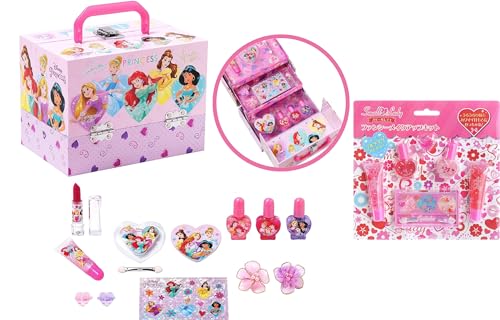 ディズニープリンセスのバニティメイクボックスとファンシーメイクアップキットの2点セット。キッズ向けのネイルやコスメを含み、女の子にぴったりのギフトです。楽しく安全なメイク体験を提供します。
