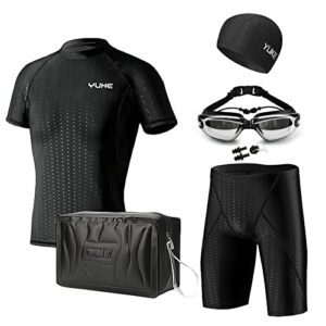 [ル モード デ トア] 競泳水着 メンズ フィットネス水着 メンズ スイムキャップ セット 901 (【ブラック&グレー】, M)の高価買取