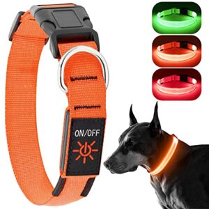 【本物のKOSKILL社】 LED光る首輪 犬用 散歩 夜 ライト USB充電式 小型犬 中型犬 大型犬 安全性 サイズ調整可能 視認距離500mで夜間も安心(オレンジ, L)