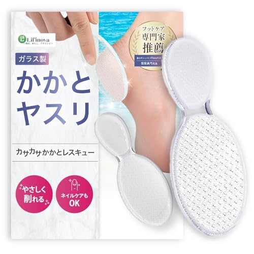 LIfinovaのかかと削りは、ガラス製で丸洗い可能。角質をきれいに取り除き、つるつるなめらかなかかとを実現。プロ監修の適切なデザインで、手軽にケアができます。