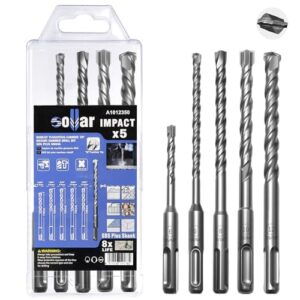 Sollar 5本組一文字の刃です コンクリートドリル 6 (110 mm) 6 8 10 12(160mm)SDS Plusドリルセット コンクリートや石材レンガの壁に穴を開けるのに適しています