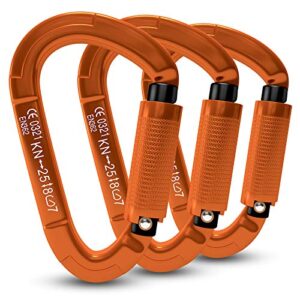 FVW 3ピース 高耐久 クライミングカラビナ 25KN 自動ロックロッククライミングカラビナクリップ ハンモック スイング 犬用リーシュ ハーネス キャンプ ハイキング ユーティリティ用 (シルバー)