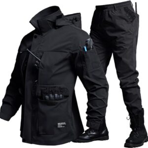 [inotenka] アウトドアジャケット 上下セット メンズ M-4XL マウンテンパーカー 撥水 防風 ウインドブレーカー ジャケット トレッキングパンツ フード付き 多ポケット 釣り バイク 登山 作業着 春秋服 (2XL ブラック)