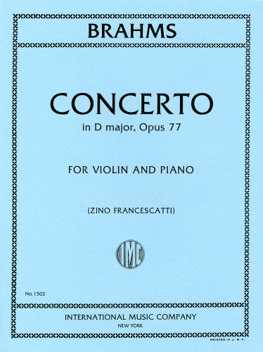 ブラームス: バイオリン協奏曲 ニ長調 Op.77のフランチェスカッティ編です。ヨアヒムとアウアーによるカデンツ付きのピアノ伴奏付ソロ楽譜。出版社はインターナショナル・ミュージック社です。