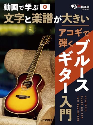 新装版 文字と楽譜が大きい アコギで弾くブルースギター入門 【動画対応】は、初心者でも分かりやすい内容で、アコースティックギターでブルースを学ぶための教材です。楽譜と文字が大きく、視認性が高いのが特長です。