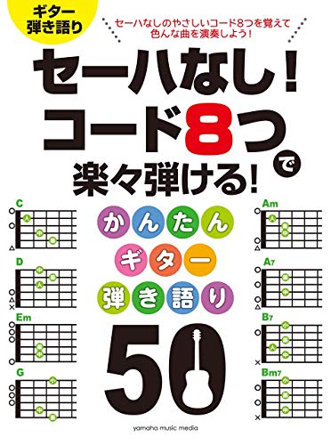 「セーハなし! コード8つで楽々弾ける! かんたんギター弾き語り 50」は、初心者向けに作られたギター弾き語りの教材です。簡単な8つのコードで、50曲を楽しむことができ、手軽に音楽を楽しむことができます。