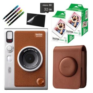 チェキ instax mini Evo&ケース&チェキフィルム40枚&microSD32GB&液晶保護フィルム&デコペン (ブラウン, 7点セット)