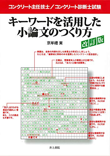 『コンクリート主任技士 / コンクリート診断士試験 キーワードを活用した小論文のつくり方 改訂版』は、試験合格を目指す受験者向けの実践的な指南書。キーワードを駆使し、論理的かつ効果的な小論文の作成法を解説。