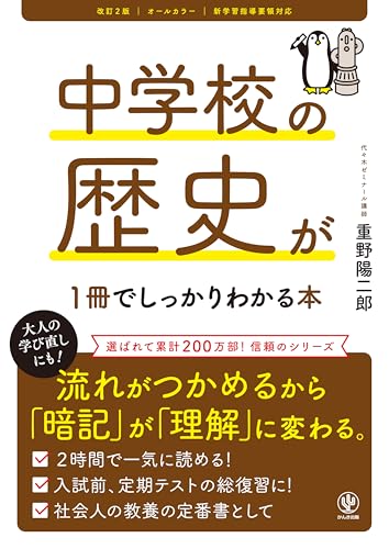 『中学校の歴史が1冊でしっかりわかる本 改訂2版』は、中学生向けに日本の歴史をわかりやすく解説した本です。重要なテーマや出来事を中心に、図表や写真を使って視覚的に理解しやすくしています。