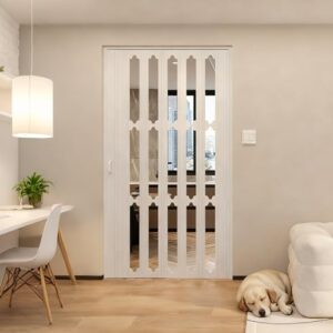 Moubhjd 折り畳みドア アコーディオンドア スライド式 室内 安全 転倒防止 突起物なし 静かな開閉 簡単操作 リビング 寝室 キッチン ダイニング 浴室 洗面所 トイレ 水回り 部屋仕切り 省スペース 子供 高齢者 ペットにも安心(両開き、サイズ:W:245 x H:205cm)