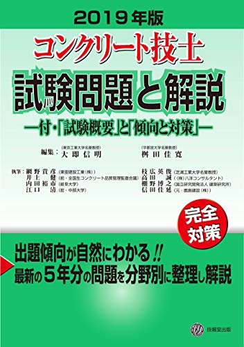2019年版コンクリート技士試験問題と解説は、過去の試験問題を基にした解説書です。試験概要や傾向と対策も含まれており、合格を目指す受験者に最適な参考書です。