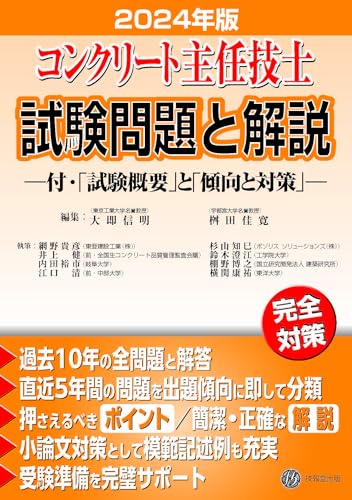 2024年版コンクリート主任技士試験問題と解説は、最新の試験内容に基づいた問題集。詳細な解説と正答が掲載され、効率的な学習をサポートします。難易度別の問題も含まれ、実践力を高めるための必携書です。