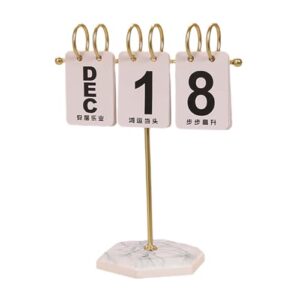 メタル製デスクカレンダー 木製ベース スタンドカレンダー ホームデコレーション オフィスギフト 白いゴールド