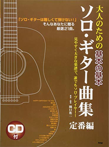 『CDブック 大人のための基本の基本 ソロギター曲集 定番編』は、大人向けのソロギター曲集で、人気のある楽曲が収録されています。初心者から中級者向けにアレンジされており、ギターの演奏技術を楽しみながら学べます。