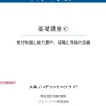 人事の学校 基礎講座6では、格付制度や能力要件、役職と等級の定義に関する基礎知識を提供。人材評価の重要性を理解し、適切な評価システムを構築する手法を学ぶことができます。