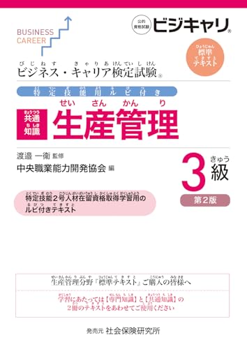 ビジネス・キャリア検定試験特定技能用のテキスト。本書は生産管理に関する知識を体系的に学べる3級対応の教材で、公的資格試験の標準テキストとして利用されます。