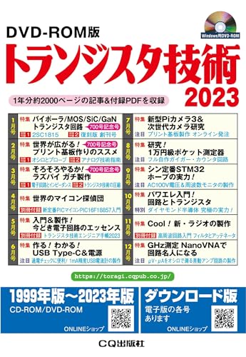 トランジスタ技術 2023 DVD-ROM版は、最新のトランジスタ技術に関する情報や技術記事を収録。電子回路設計や製作に役立つデータが満載です。