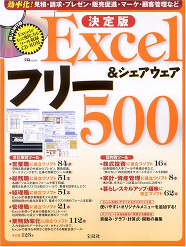 『Excelフリー&シェアウェア500 決定版』は、見積もり、請求、プレゼンテーション、販売促進、マーケティング、顧客管理などに役立つツールを集めた一冊です。効率化を図りたいビジネスパーソン必見のMOOKです。