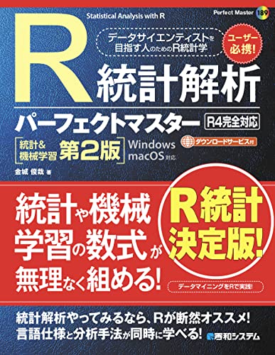 『R統計解析パーフェクトマスター(R4完全対応)』は、統計と機械学習の基礎を徹底解説した書籍で、実践的なRの使用法を学べます。第2版では最新の手法とアップデートを含む内容です。