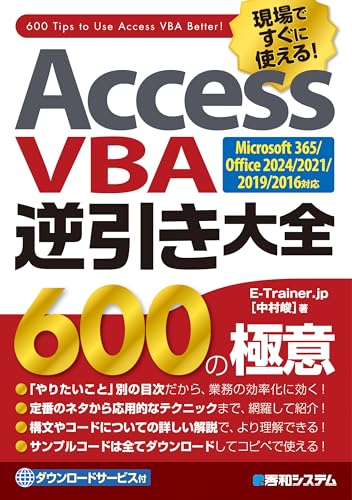 『Access VBA逆引き大全 600の極意』はMicrosoft 365、Office 2024/2021/2019/2016に対応した実践的なVBAテクニック集です。初心者から上級者まで役立つ情報が満載です。