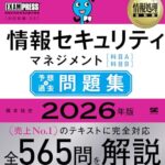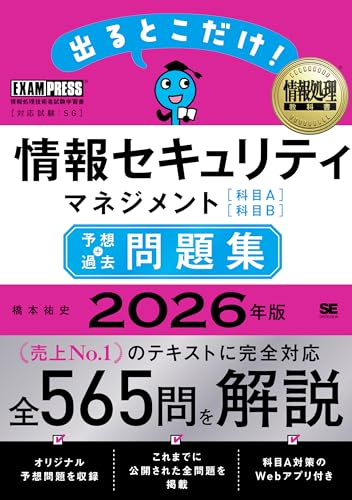 令和8年情報処理教科書「出るとこだけ!情報セキュリティマネジメント 2026年版」は、565問の解説と予想問題を収録した教材です。科目Aと科目Bの過去問題が含まれています。