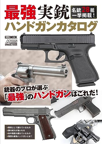 「最強実銃ハンドガンカタログ」は、各種ハンドガンの詳細を掲載した専門書です。実銃の仕様、性能、歴史などを詳しく解説しており、愛好者必見の一冊。