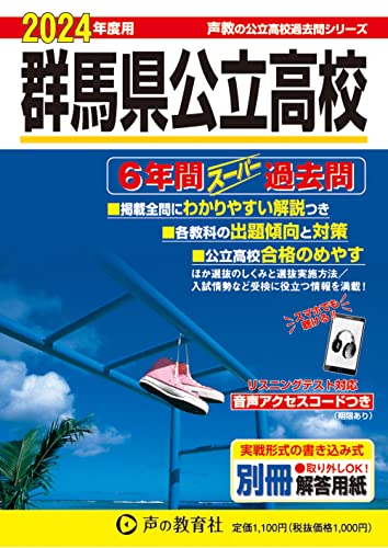 群馬県公立高校 2024年度用 6年間スーパー過去問は、声教が出版した公立高校受験対策の参考書です。過去6年分の問題を収録し、効率的に学習ができるよう工夫されています。