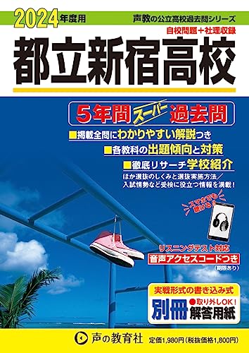 都立新宿高校2024年度用の5年間スーパー過去問。声教の公立高校過去問シリーズ258。受験対策に最適な問題集で、過去の試験問題を5年間分収録しています。理解を深める解説付き。