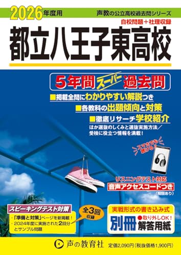 東京都立八王子東高校2026年度用5年間スーパー過去問は、声教の公立高校過去問シリーズ253として、過去5年分の問題を収録。入試対策に最適な一冊です。