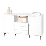 LOWYAのキャビネットは、幅120cmのホワイトとゴールドのデザインで、教科書やリビング用品の収納に最適。おしゃれなサイドボードとしても活躍します。