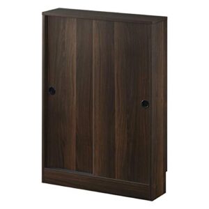 ぼん家具 カウンター下収納 奥行15cm 引き戸 幅60cm 薄型 キッチン収納 マルチラック キャビネット ウォールナット