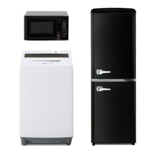 【新生活応援】【家電3点セット】アイリスオーヤマ 家電セット 冷凍冷蔵庫 130L ブラック 洗濯機 7kg ホワイト 電子レンジ 17L ブラック 一人暮らし
