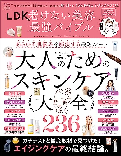 LDK老けない美容最強バイブルは、美容に関する最新情報や効果的なケア方法を紹介するムック本です。年齢に負けない美しさを保つための知識や商品レビューが満載で、読者に役立つ情報が詰まっています。