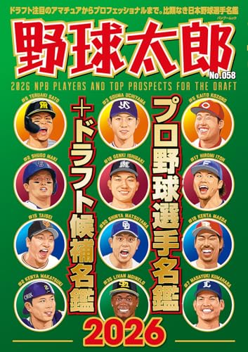 「野球太郎No.058 プロ野球選手名鑑+ドラフト候補名鑑2026」は、2026年シーズンに向けたプロ野球選手やドラフト候補の詳細情報を網羅した専門書です。選手の成績や背景を深く掘り下げています。