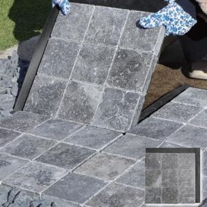 防草シート大理石ブラック 防草マット 敷石 敷き石 天然石マット ジョイントマット 300角 雑草対策 タイル 庭 石 敷く 石畳 溶岩 小舗石 防草対策 ガーデニング 庭用 除草マット ピンコロ石 舗石 アプローチ (1, 1箱)