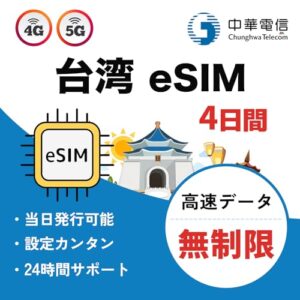 台湾eSIM 4日間 データ完全無制限|5G超高速通信|TiktokとChatGPT対応|APN自動設定 (初心者OK)|データ通信専用(電話番号なし)|説明書付き|LINEで24時間サポート (4日間)
