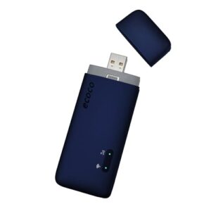 【ecoco】1年間 10GB データ付 USB型 ポケット Wi-Fi 契約不要 月額費用なし 【紛失・水濡れ・落下も1年間交換保証】ミッドナイトブルー バッテリー レス 車載対応 ギガ リチャージ 可能