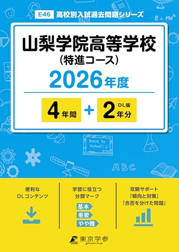 山梨学院高等学校特進コースの2026年度版過去問集。4年分+2年分の入試問題を収録。高校別入試過去問題シリーズE46。受験対策に最適な一冊です。