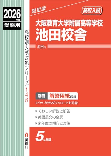 「大阪教育大学附属高等学校池田校舎 2026年度受験用」は、高校別入試対策シリーズの第148弾です。入試対策や過去問題集を中心に、受験生のための情報が豊富に掲載されています。