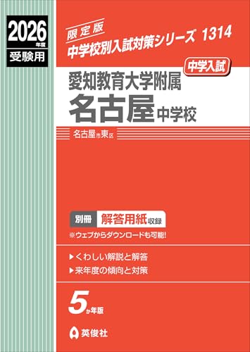 愛知教育大学附属名古屋中学校 2026年度受験用の参考書。入試対策に特化した内容で、過去問や傾向分析を掲載。効率的な学習をサポートし、合格を目指す受験生必携の一冊。